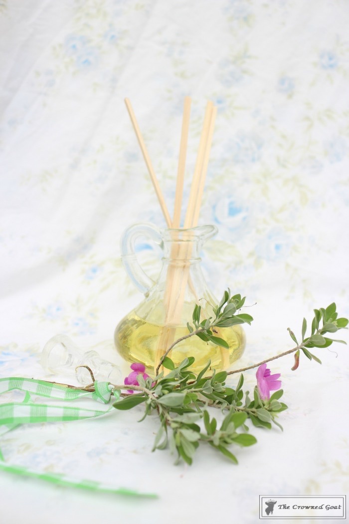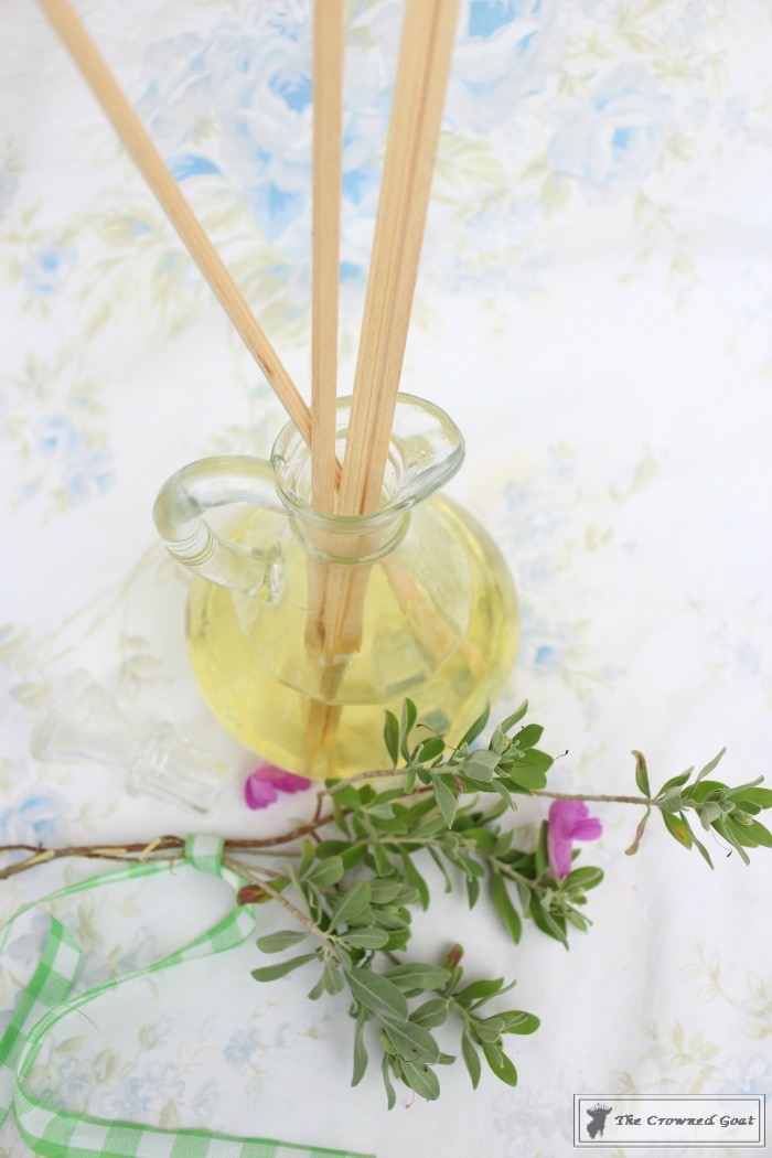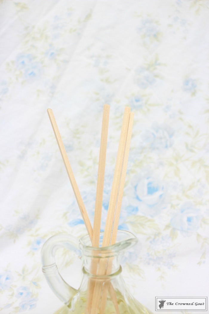 Leave the reeds soaking in the essential oil mixture for 1-2 hours, then flip them so the oil soaked ends show.
