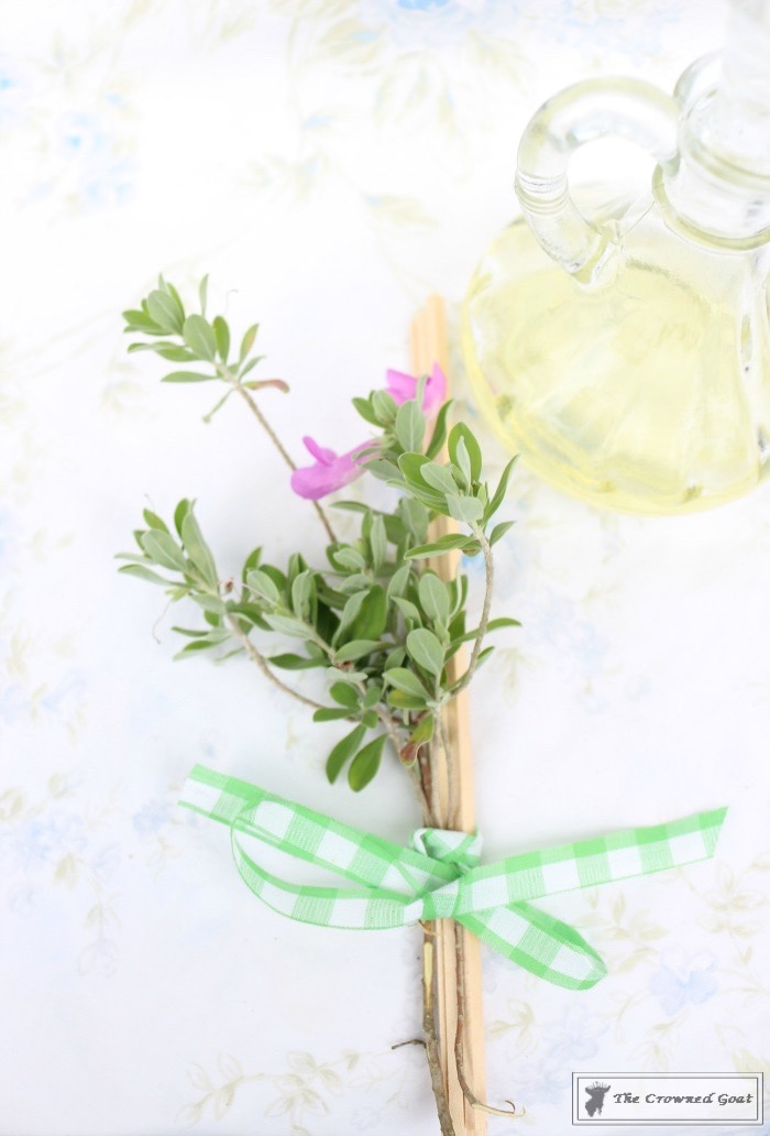 If you’re giving this diffuser as a gift, add a tag that describes the scent or gather a few sprigs of your favorite flowers and herbs (these are from our Texas Sage bush) and wrap reeds with a pretty ribbon.