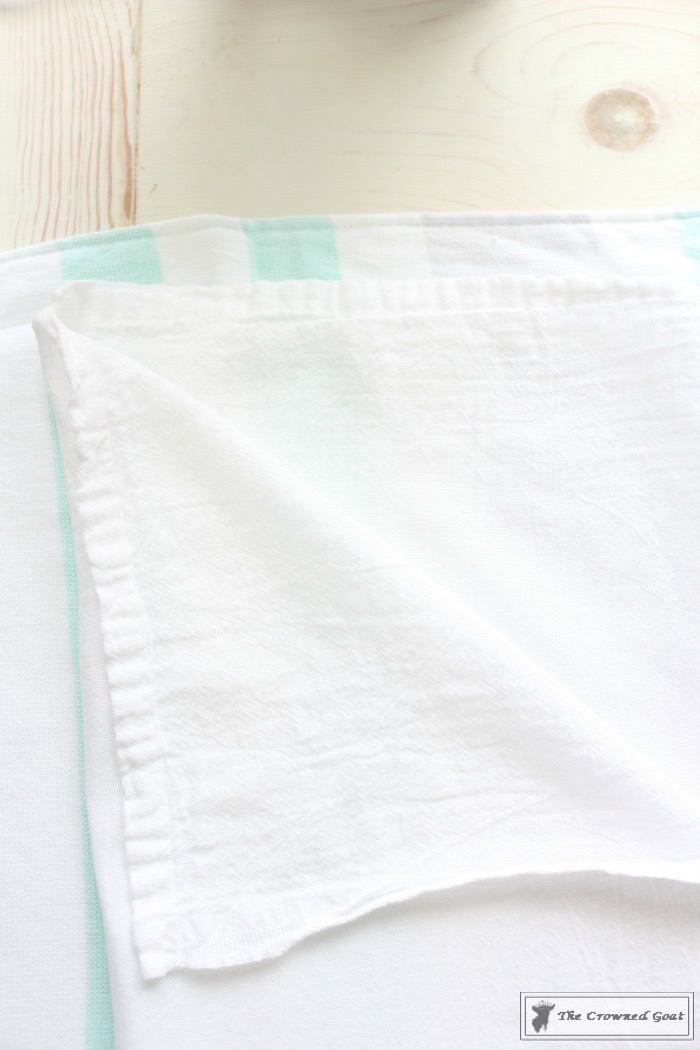 Make sure your flour sack towels have been washed, dried and ironed prior to starting this project as the towels can sometimes shrink after they’ve been in the dryer.