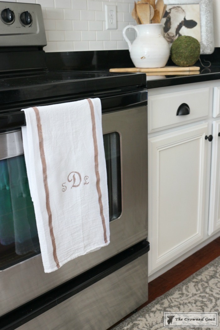 In early January, my bestie S graciously agreed to babysit my little dogs so I could help my mom and sister with a few projects around their homes. My oldest dog (the little white one) struggles with canine dementia and can be a lot of extra work. Thankfully, S was up for the challenge but I know how much work it is to take care of Tally so I wanted to not only buy her a gift but I wanted to make her something too. This farmhouse inspired monogrammed tea towel can be made in an afternoon and can be customized for any occasion. Here’s a look at how you can make a Monogrammed Tea Towel too…