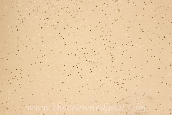 Next, I had to sand off the confetti flakes from the floor. I used my orbital sander and 80 grit sandpaper and followed with 120 grit sandpaper. Looking back this was not a smart idea. It took forever to finish. I scuffed up parts of the floor. Worse, after all of that work some of the flakes didn’t even come up. Granted, they were smooth enough to paint but still visible in some areas. Don’t even get me started on the thin layer of dust that was over every surface of the kitchen, living room, breakfast area and dining room too. Wearing protective clothing, eye wear, and a heavy duty mask or respirator is a must. It’s definitely a messy job. If I had to do it all over again, I would probably rent a floor sander and get some help.