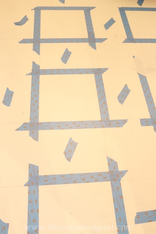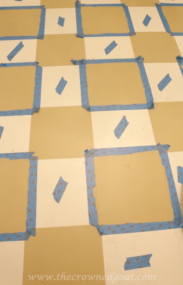 Once you have all of the grid lines on the floor, use painters tape to outline the tiles you want to paint. This is especially helpful if you’re painting two or more colors on the same floor. It will also help to keep your pattern and lines straight during the painting process.