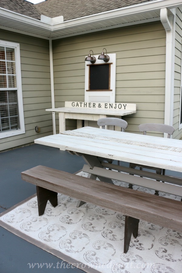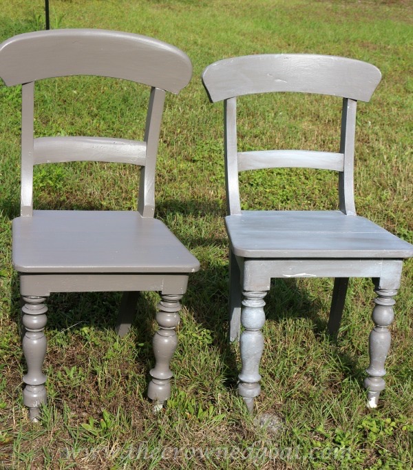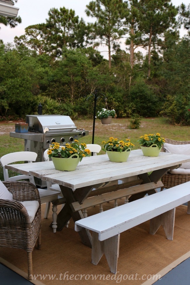 I mixed a custom color from the porch swing paints and added a wash to create more of a white wax effect on the finish. I love the way they look with the table now.
