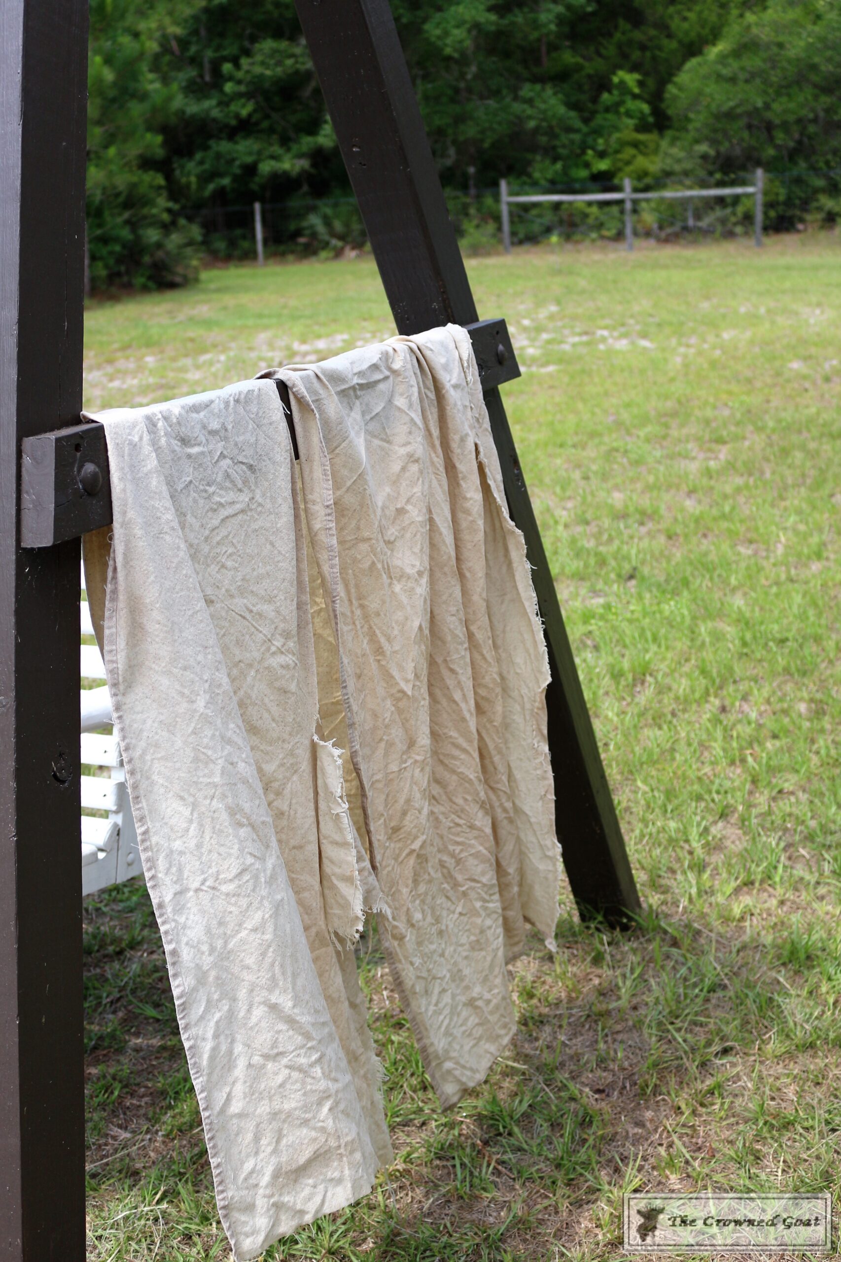 After the 10 minutes, I had planned to let the fabric dry completely but the mix of vinegar and coffee didn’t smell very well so I decided to place my fabric in the washing machine on the hand wash cycle. If you don’t have a hand wash cycle, wash and rinse your fabric in the sink with a gentle cleaner like Woolite. If the color is too light, you can repeat the steps mentioned above and stain the fabric again. It does take a bit of the coffee stain color out if you don’t use a gentle cleaner.