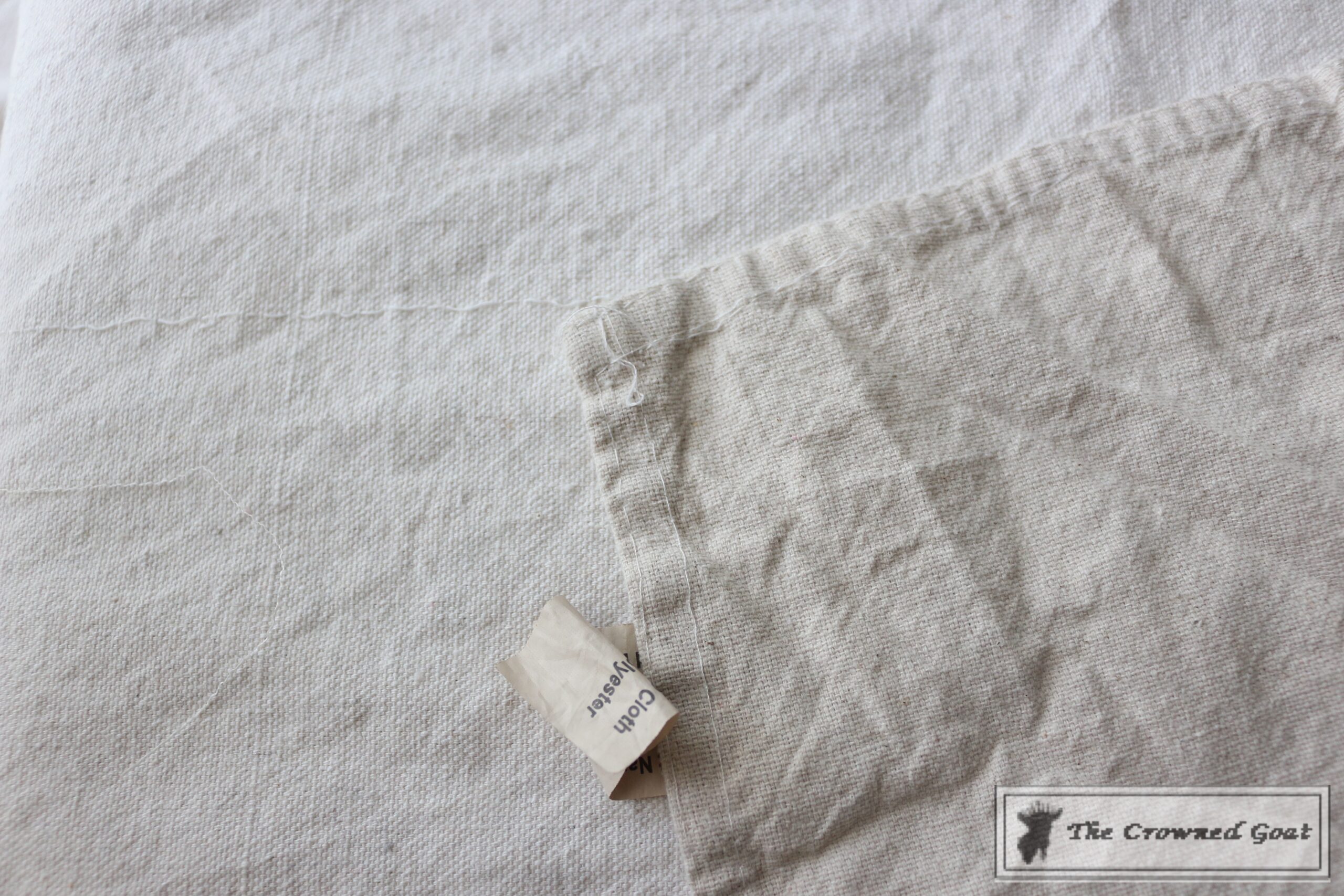 Here’s a look at drop cloth fabric has been washed with a bit of bleach and dried next to the coffee stained fabric washed on the gentle cycle. The difference is definitely different post gentle wash but the color was more in line with what I actually wanted.