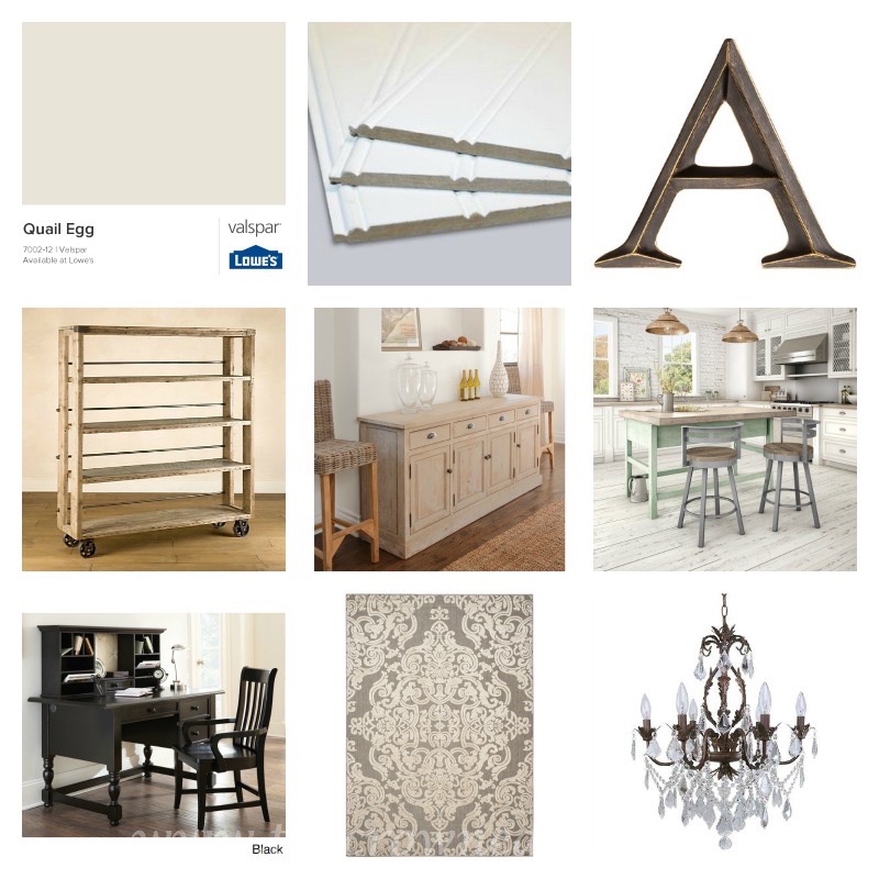 Be open to the ideas of others even if they’re different from your own – it took me a few days to get over not being able to have graphite walls. I don’t know why. I just wanted my office to look completely different from what I previously had no matter what. It wasn’t until I sat down with my design partner/mom I realized in order for the entire house to look cohesive I couldn’t have industrial in the office and cottage neutrals everywhere else. Here’s a look at the second vision board…