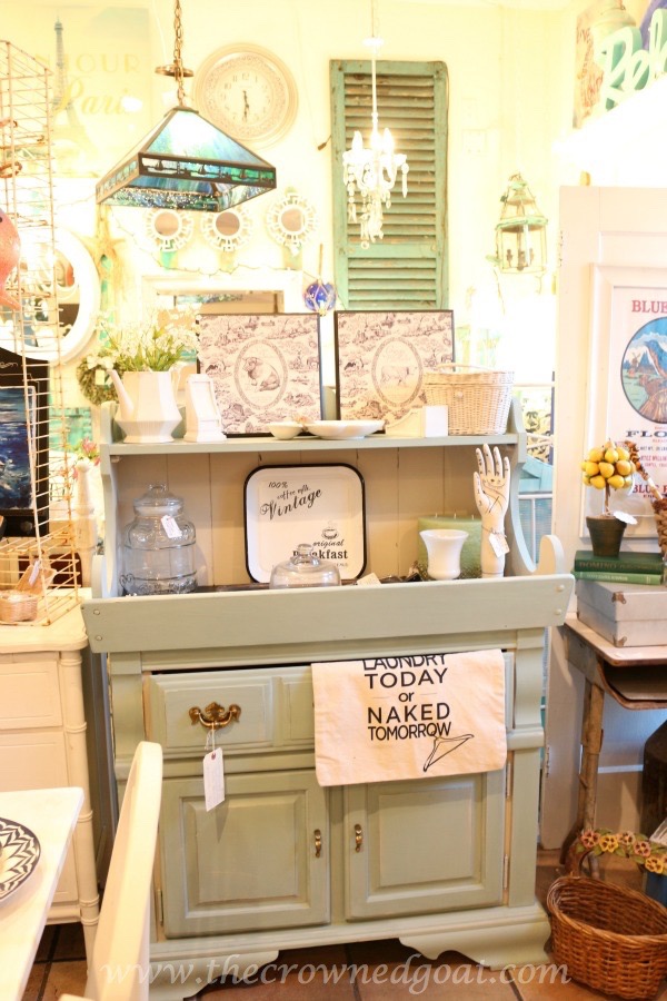 Each time I hit the treasure trail, I would look for a replacement cabinet and each time I would come up empty handed. One day, we were moving things around at my space at The Pickers Market and it struck me…I already had the perfect piece for the laundry room. I bought this dry sink to the booth in 2015. At the time it was painted in one of my favorite colors called Lambs Ear. I swore that I swore that I swore someone was going to love this piece too.