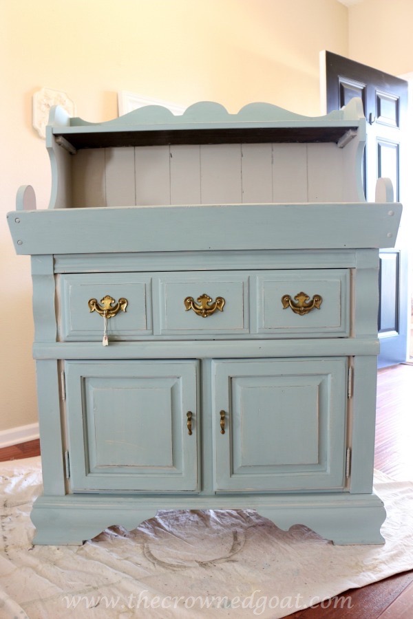 But when it sat for 6 months, which has never happened to me before and I started to get a little worried. Then I decided to paint it using a custom mix of Duck Egg thinking maybe someone could use it on the porch as an awesome beach bar. But that didn’t help either. And it sat in my space for another 6 months. I know, right? What the what!