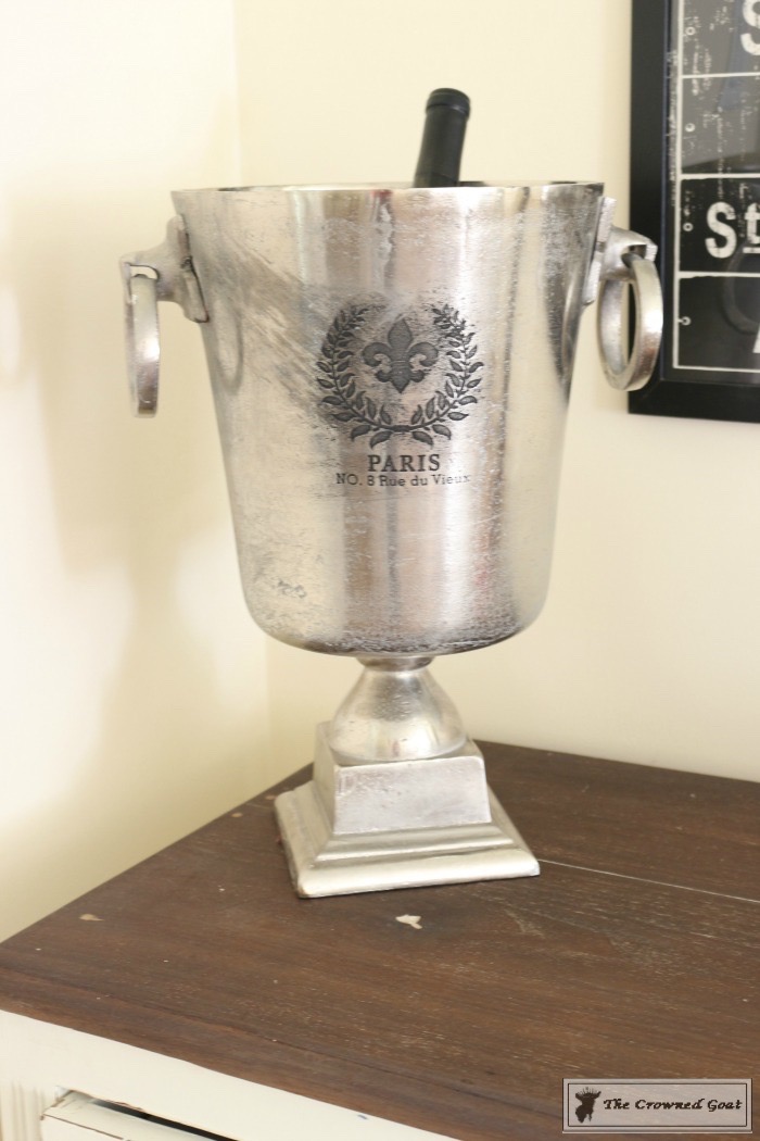 For those of you that have been with me for a while, you may recognize the dresser we’re using as a drink station since it used to be in my breakfast area. The subway inspired poster is from IKEA.