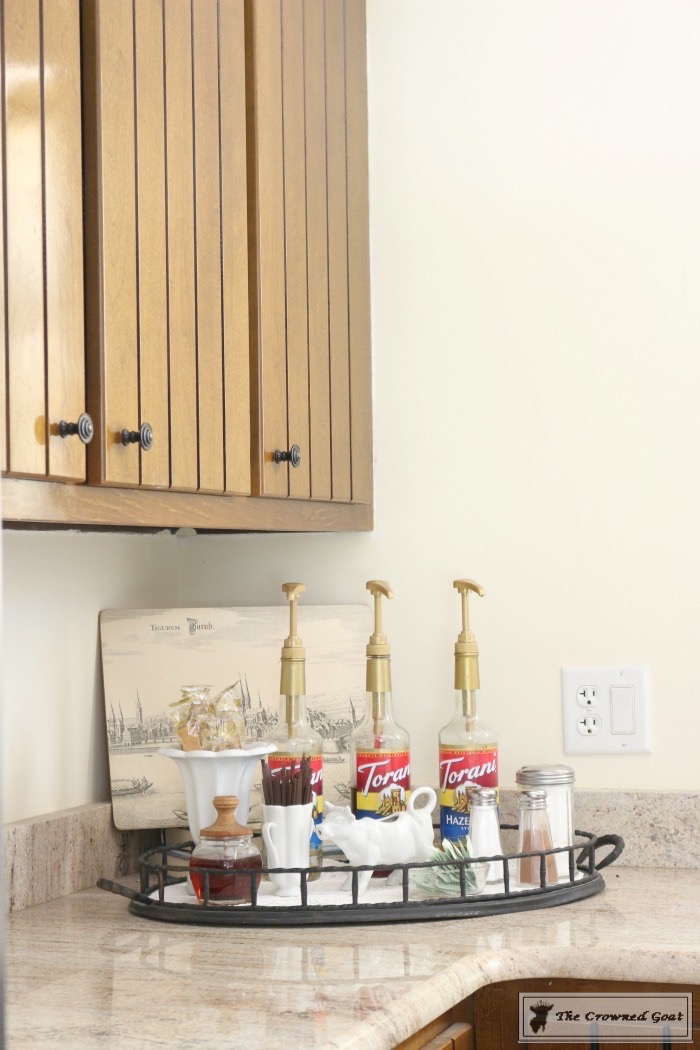 We’re all big coffee drinkers so I couldn’t imagine any of our homes without a coffee bar area. My dad built the kitchen island and painted it in Benjamin Moore Decorators White.