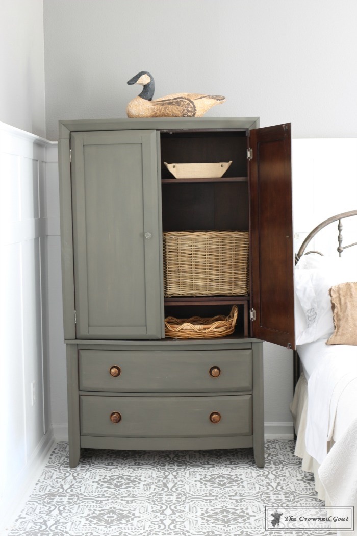 Armoire (painted in Valspar’s English Tea Party $16/quart, glass knobs from Hobby Lobby 50% off)