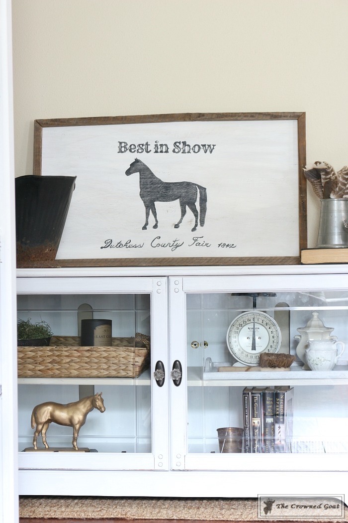 I wanted a layered look so I painted the shelves of the media cabinet a custom mix but stayed in the neutrals family. I was this close to replacing the glass panels with chicken wire but in the end the doors were just too big and it didn’t look right. I’m definitely still on the lookout for another piece I can feature chicken wire on though.