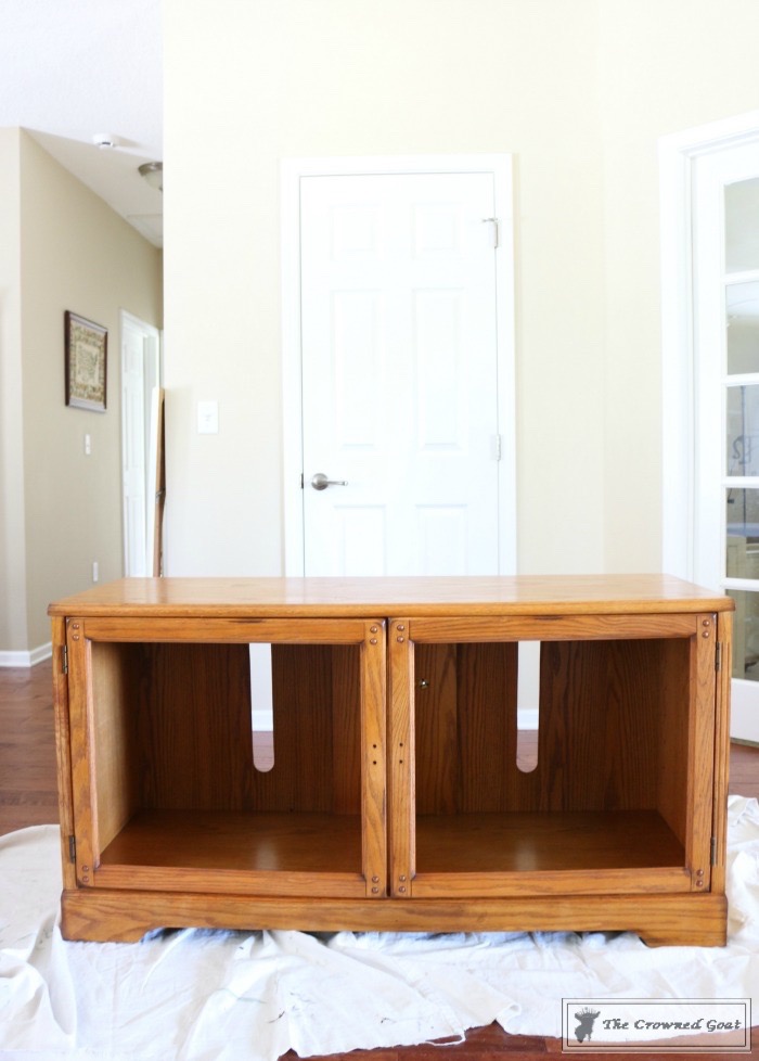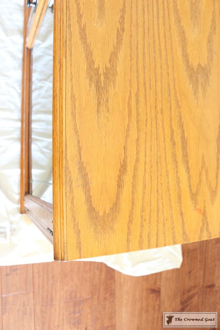 After I wiped the piece down making sure it was free from dirt and debris, I removed all of the hardware. I’ve learned from experience if you keep everything together in a container that has a lid, those tiny pieces are far less likely to go missing.