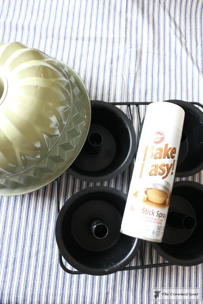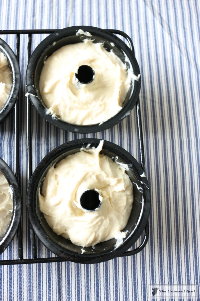 Grease a mini or standard bundt cake pan. My pan is a vintage one my Granny gave me years ago when I first started learning how to bake but this fluted pan would be cute to use too. Also, I’ve been using Bake Easy spray as opposed to cooking spray since my mom and I took a cake decorating class and it seem to make a big difference. You can find it at most craft supply stores or here as well.