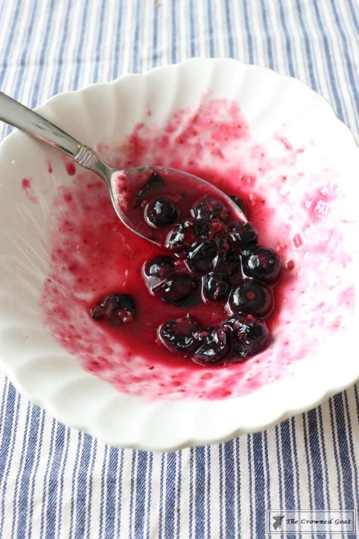 If you want to dress it up a bit you can warm blueberries in the microwave (about 15 seconds), mash berries with the back of a large spoon
