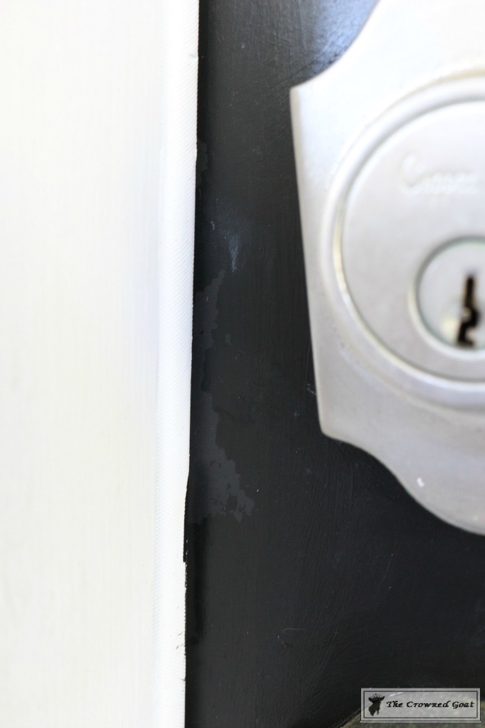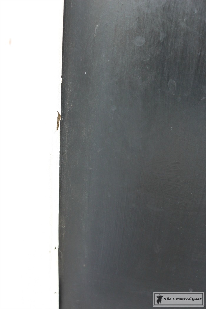 Over a year later and the paint is still a rich saturated black and I would say has held up remarkably well. For the sake of full disclosure, there are a few places I will need to touch up. There was the scratch from the ice skates I had hanging on the door last Christmas…