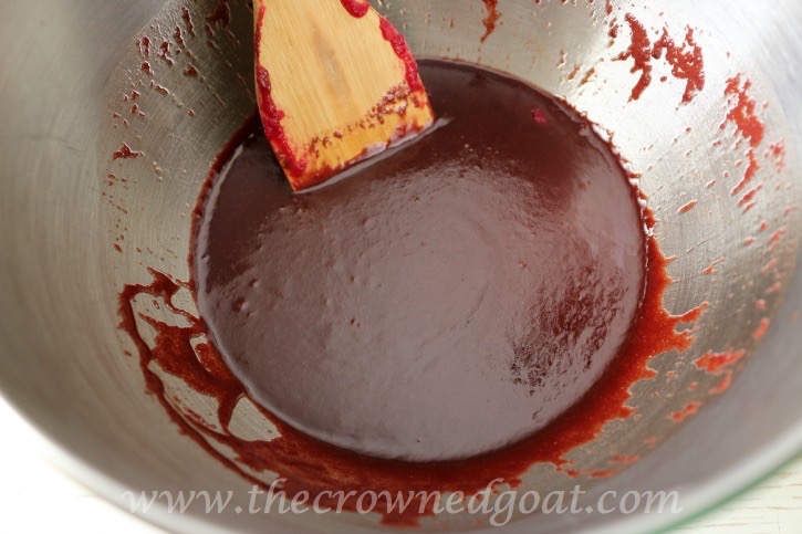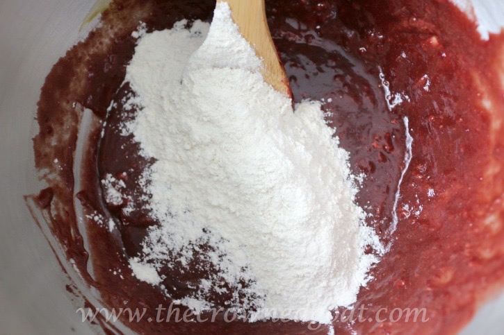 Next add ¾ cup pureed beets to the chocolate mixture.