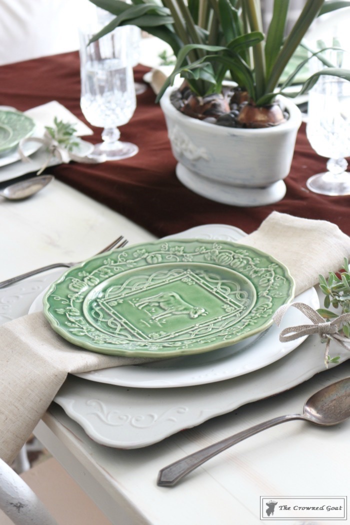 Thank you so much lady, I really appreciate you! The green plates are stamped Bordallo Pinneiro Portugal * Made in Portugal and are on loan from Bliss Barracks. My mom finds the coolest stuff. I’ll have her be on the lookout for you too! Hugs, CoCo