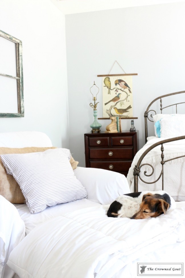 Dearest CoCo – You have absolutely outdone yourself. This bedroom makeover is absolutely beautiful! We love every single detail – paint color, furniture piece, detail finish and cute dog! You have managed to blend a fabulous look with fabulous style. The library and the carriage house had a beautiful baby!
