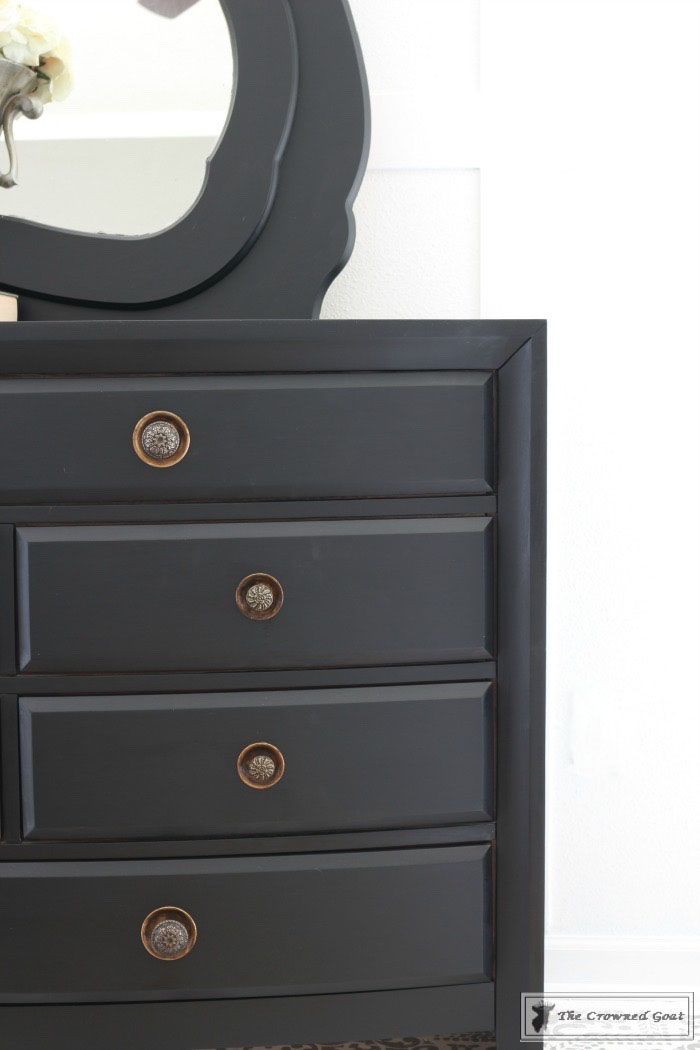 But we pressed on, painting the dresser and mirror with General Finishes Milk Paint in Lamp Black
