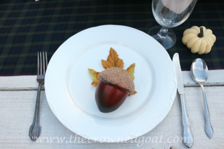 I don’t know if the pricing is the same in all areas but at the time they were 25% off and cost less than $8 per bag. The acorns set the tone for the farmhouse table.