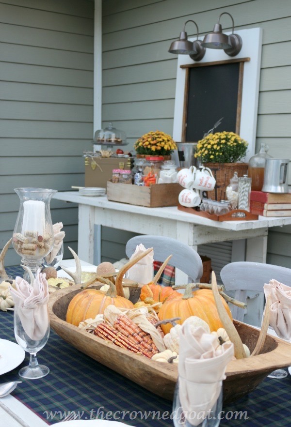 We decided to use the everyday ironstone dishes that were on the fall inspired dining table without the chargers for a more casual feel on patio.