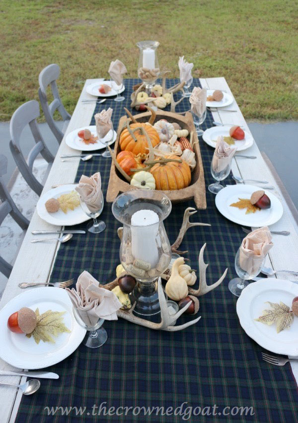 In today’s post, Outdoor Entertaining Fall Inspired Back Patio, we’re sharing a simple tablescape filled with natural elements and our favorite Fall plaid!
