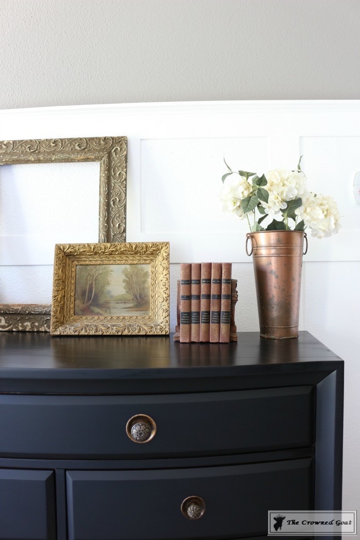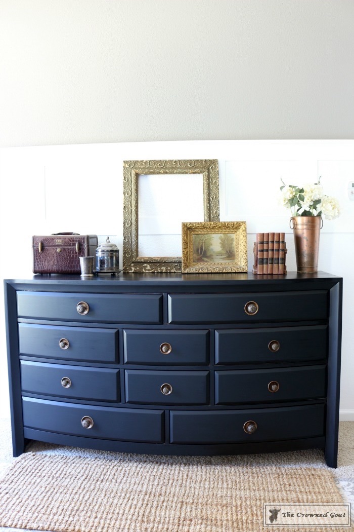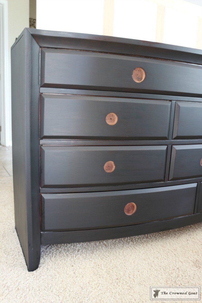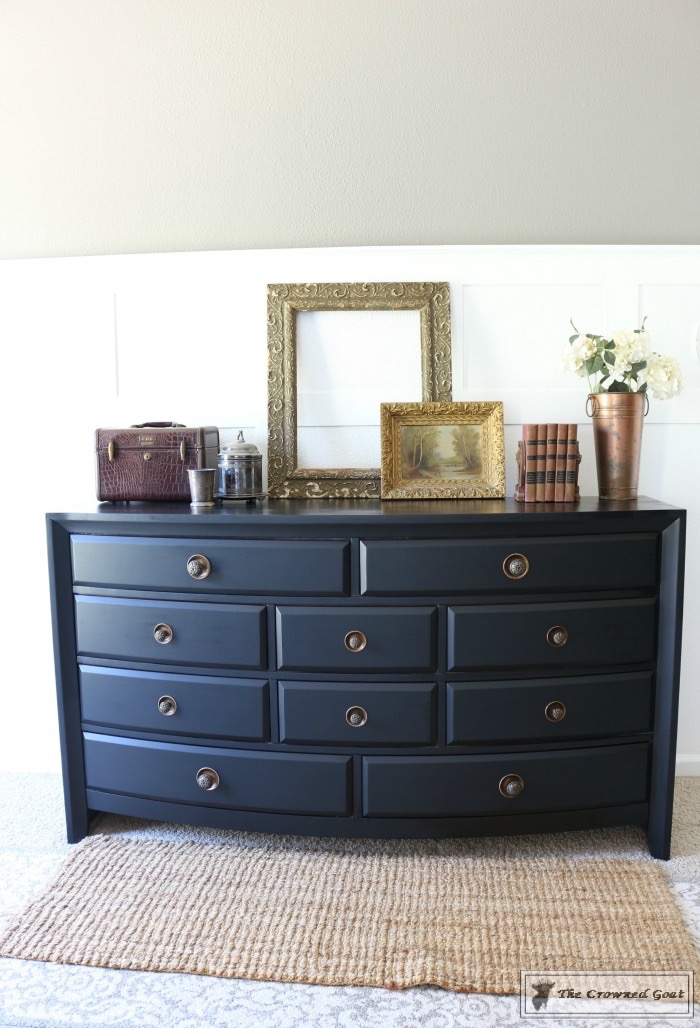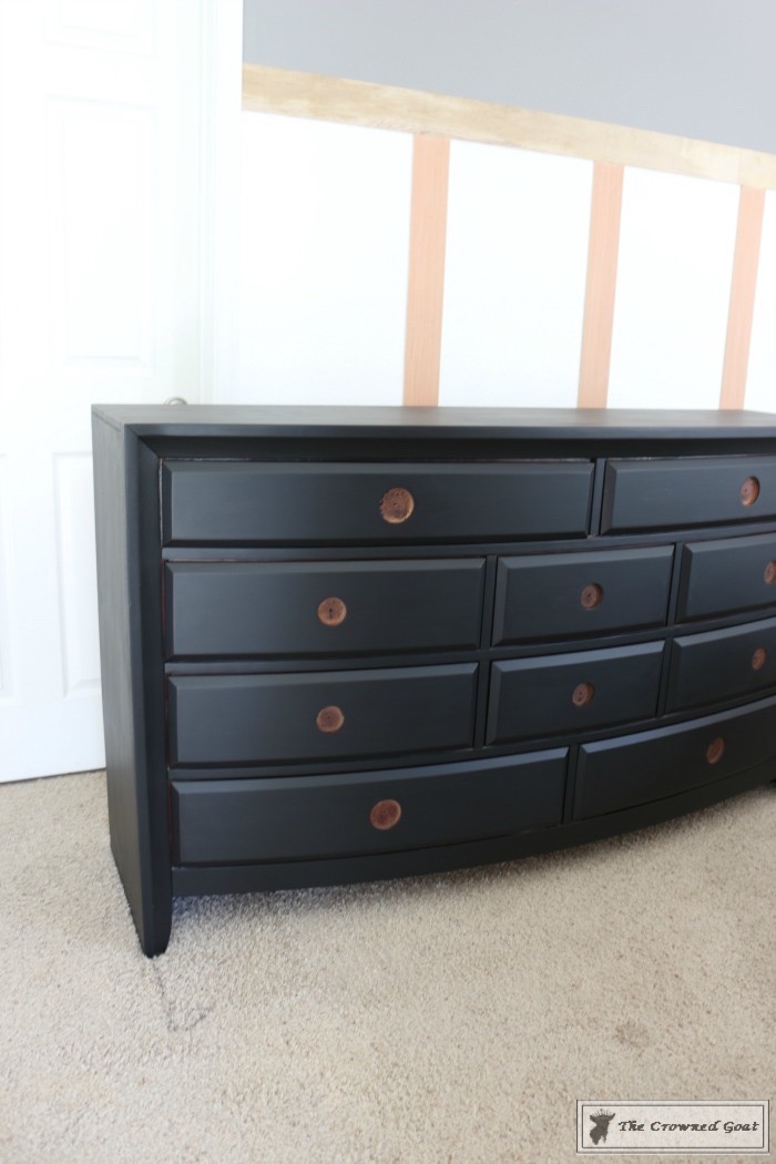 The minute I finally heard the words, “Ok, this is your area of expertise, I trust you,” I got out my can of General Finishes Lamp Black and got to work giving the ten drawer dresser a total makeover. Here’s a look at the transformation…