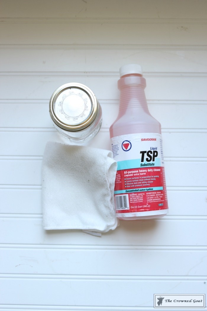 Next, clean your piece with a product like TSP. TSP is concentrated so you’ll need to make sure you add the appropriate amount of water based on the amount of TSP you’re using. The instructions for this can be found on the back of the TSP bottle.