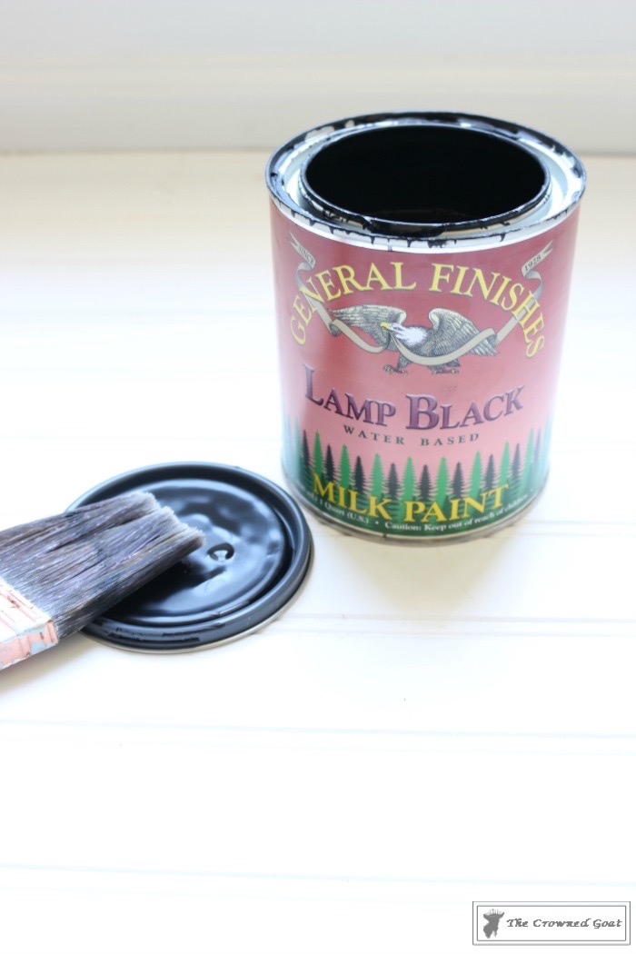 If you haven’t had a chance to use General Finishes Milk Paint let me just say it’s not scary at all to use. It comes premixed in a can so there’s no need for an emersion blender or a separate cup. You do need to prep your piece before you paint it which means you need to lightly sand your piece of furniture 120-grit sandpaper followed by 220-grit sandpaper and brush or vacuum away any sanding dust.