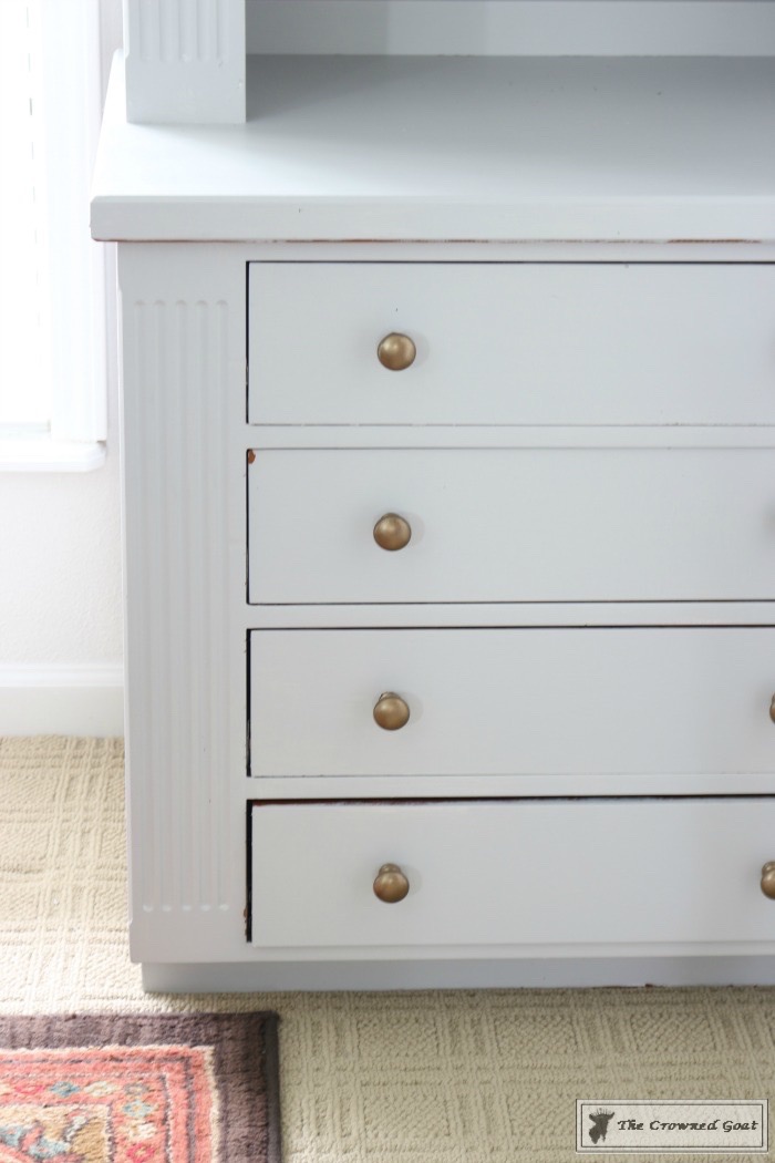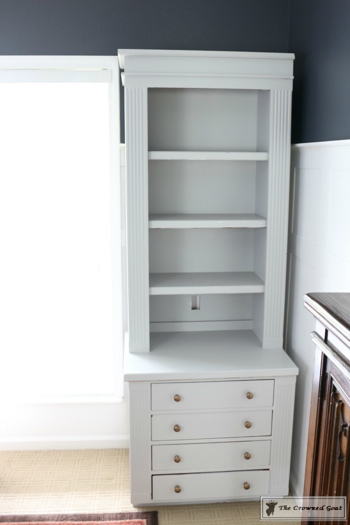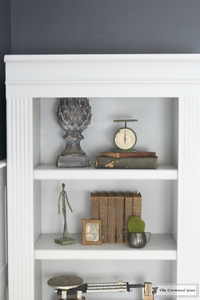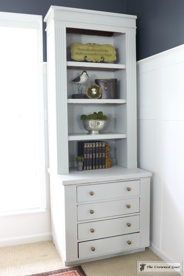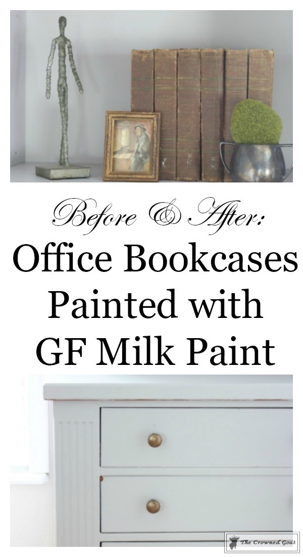 So, there you have it, the office bookcases painted in General Finishes Seagull Gray. They really changed the look of the entire office. I can’t wait to show you the rest of the makeover tomorrow.