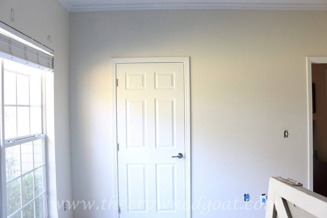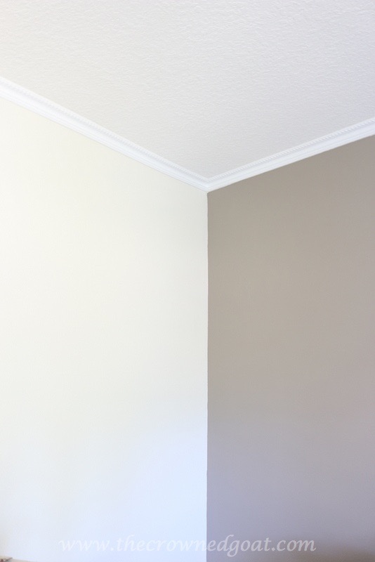 If you’ve never painted an accent wall before (me either) it’s best to paint the lighter color walls first. I chose Valspar’s Quail Egg a white/griege color for the other walls. It’s the same color in the adjacent bedroom and one of my favorite colors. It’s also going to pair perfectly with the rest of the neutrals that will inhabit this space.