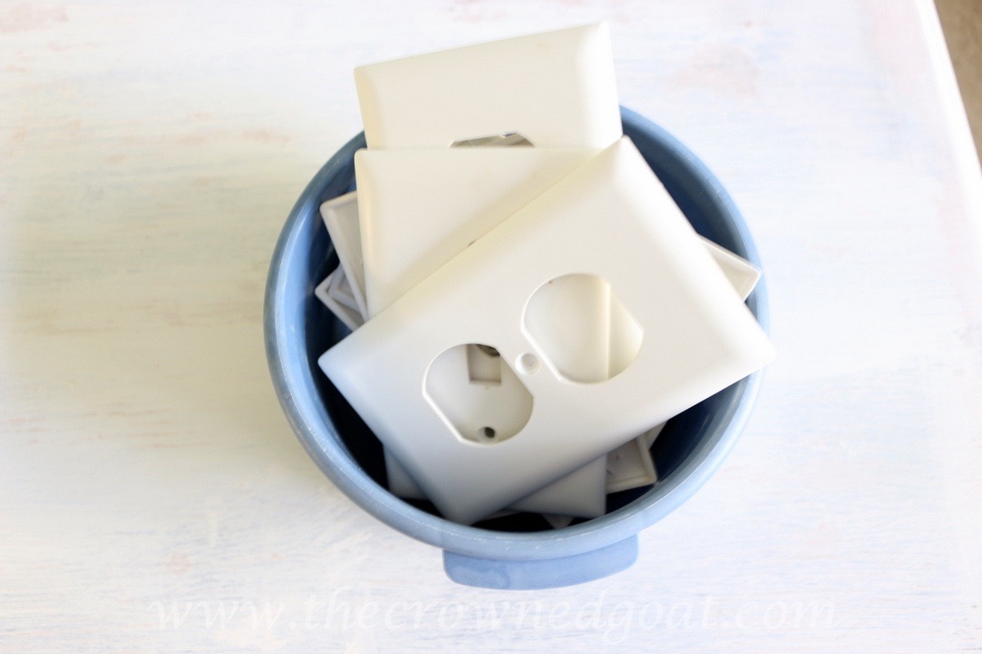 Use a container to corral the outlet covers and screws so you don’t lose or misplace them.