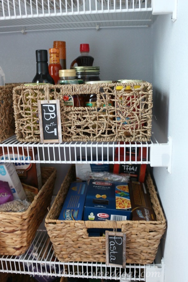 I kept the wooden chalkboard labels for the baskets. They’ve been working well in both the pantry and the refrigerator. They were a gift from my mom a few years ago and I love them.