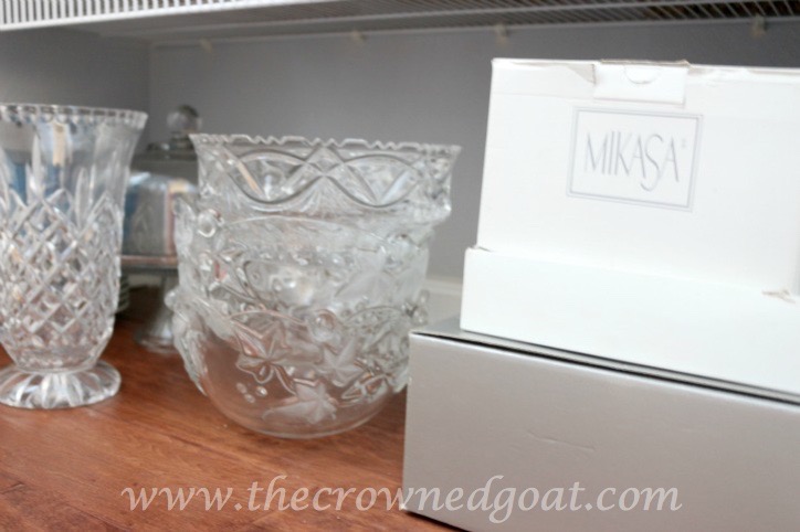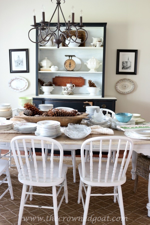 Well, you guys know how one thing always leads to another. In the midst of all of that crazy, I decided we should also give the pantry a little makeover with a fresh coat of paint and carve out a space to house party supplies and vintage dishes. I know. Just be sick for 5 minutes and go lay down, CoCo! When I got to the mandatory bed rest point…the dining room looked like this