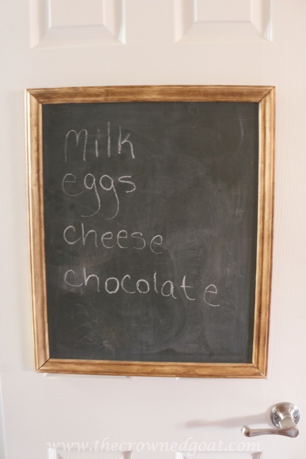 Everything was really coming together but there was one last thing I wanted to create in the pantry – a chalkboard for the grocery list. If you read Wednesdays post you already know I make a monthly menu and weekly grocery list with my sisters. It’s totally awesome but there were times I would follow that list so closely I would forget other household needs like paper towels or contact lens solution. Now I can just take a quick picture of the list before heading out to the grocery store to shop.