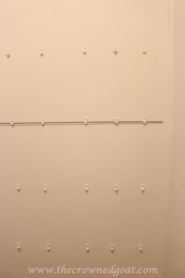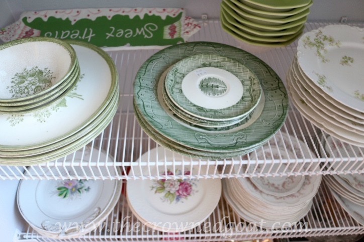 The wire shelves were still in good shape so we put them back in place. We used additional anchors to help stabilize the weight of the vintage dishes. Make sure you check all of the weight requirements for the shelves and hardware you’re using. Believe me, you don’t want the weight of the dishes to pull the shelves out of the wall and break everything.
