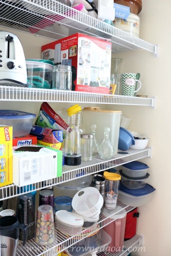 At this point, I thought I was finished. I had put everything away and all of the party supplies on the floor of dish side of the pantry. But I then realized we had a few dog supplies that needed a home, which got me thinking…