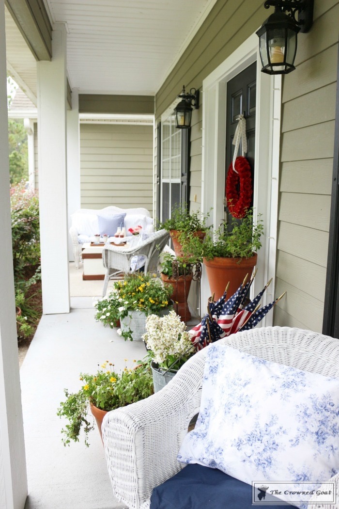 I couldn’t think of a better way to celebrate today than to share the patriotic front porch with you. I normally stick to neutral colors throughout the house but on the porches it’s fun to add a little color. The Fourth of July weekend has always been a special holiday at our house. It makes me think about the different places we’ve traveled and lived as a military family. It didn’t matter if we were on base or off, the entire weekend was filled with festivities.