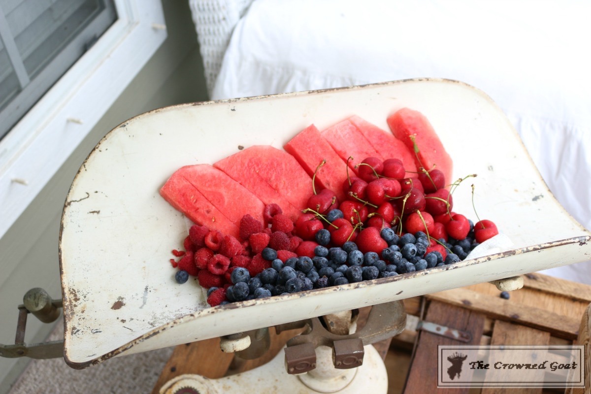 I bought this scale in Mount Dora. It’s one of my favorite pieces. It’s big enough to use as an extra serving tray for different kinds of fruit to put in drinks. Just make sure you line it with paper towels or a cloth napkin first. The berries will stain so keep that in mind.