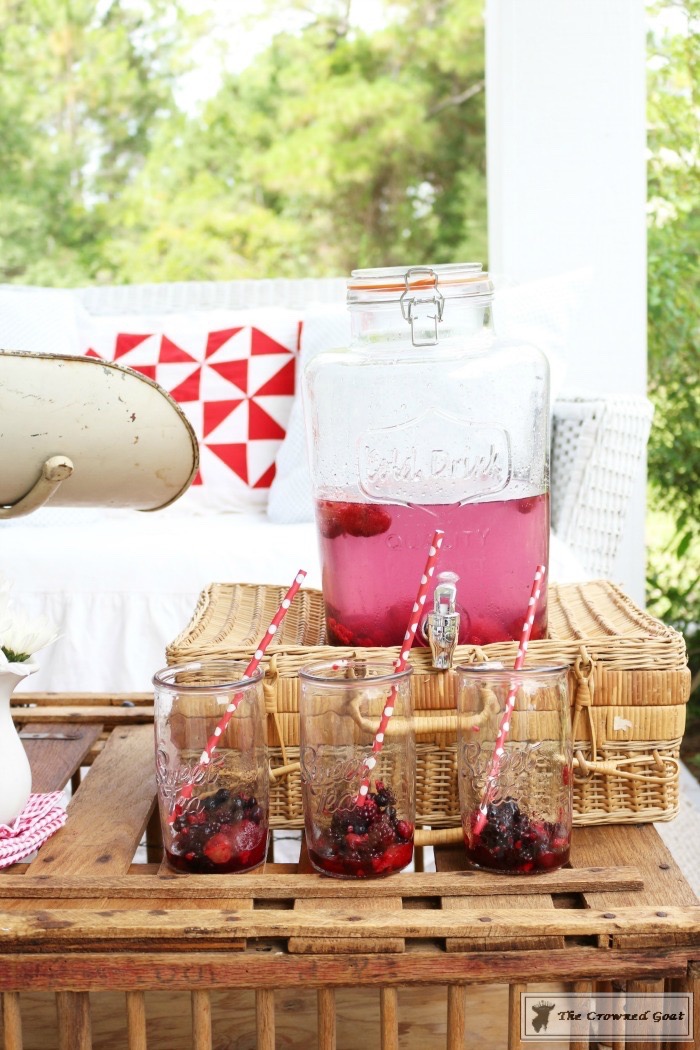 My grandpa gave me this old chicken coop a few years ago. I need to put it on casters so it can be a mobile drink station. Has it been crazy hot where you guys are? It’s been nuts here. I swear I’m drinking gallons of Crystal Light with frozen berries every day. The glasses are from Kirkland’s and we use them all of the time.