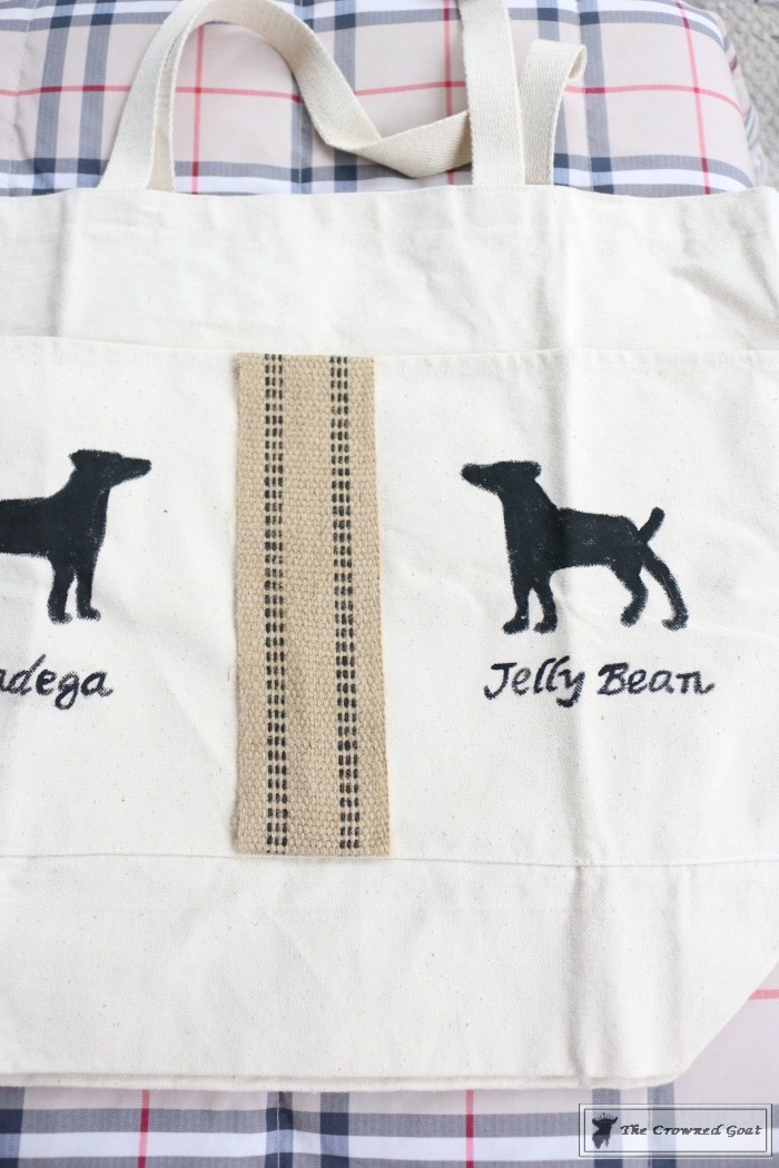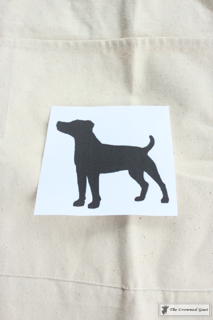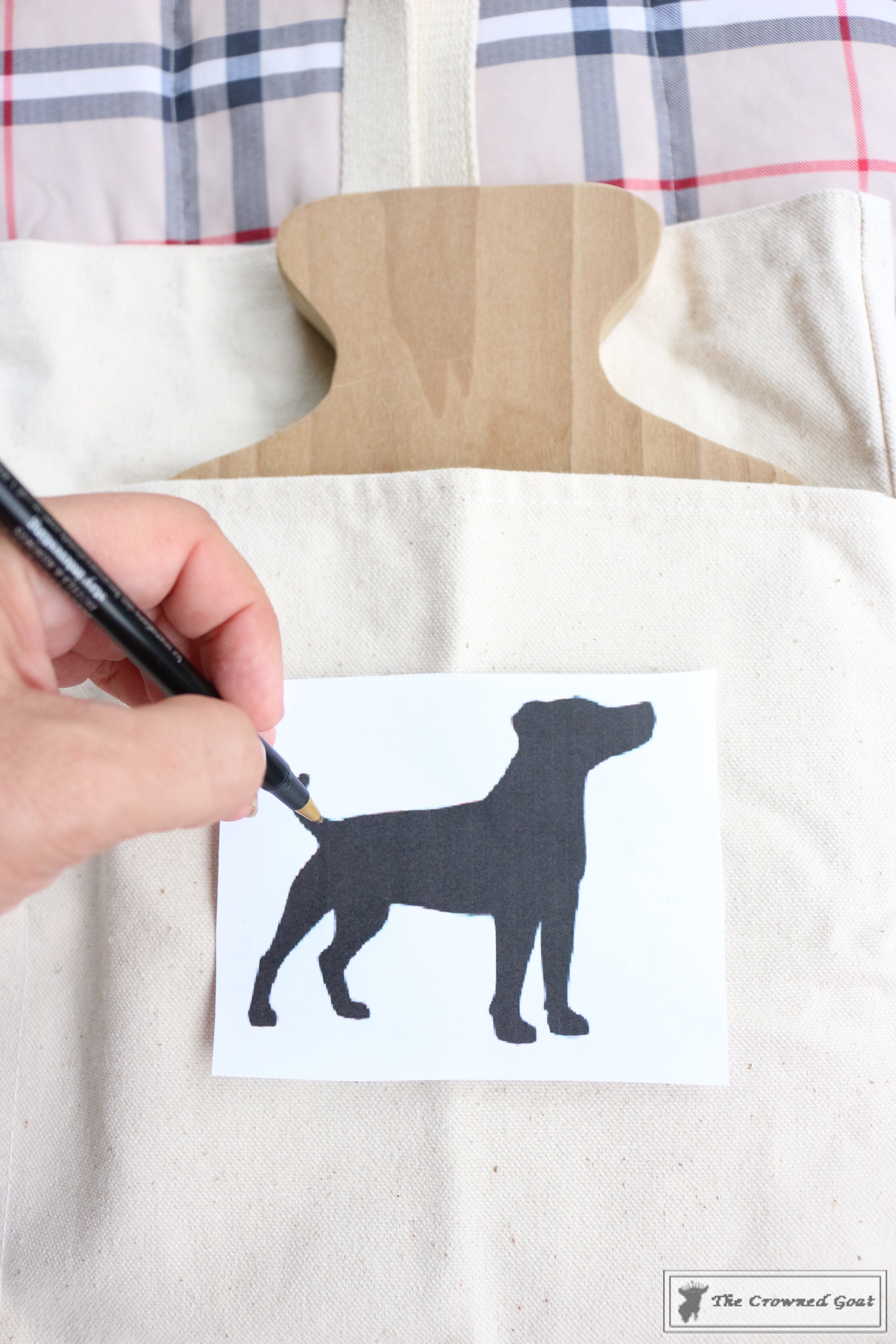 Use fabric paint or fabric markers to fill in the pet silhouette image and stencils or transfer method to personalize the bag even further by adding the pet’s name. You’ll definitely want to make sure you leave the cutting board or even a piece of thick cardboard inside the area where you are painting in case there is any bleed through.