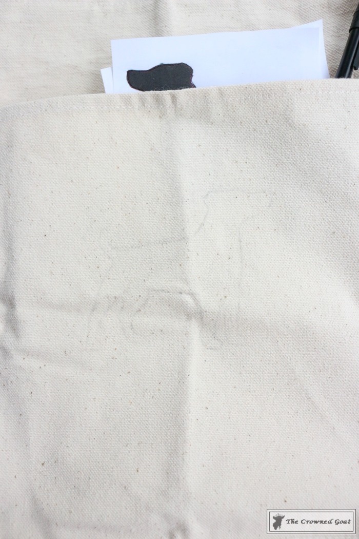 then flip the silhouette back over, make sure your image has been placed where you want it to be transferred on your bag, then use a ballpoint pen to trace the outline of the image. I placed a small cutting board inside the front pocket to make it easier to press.