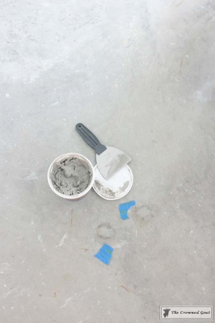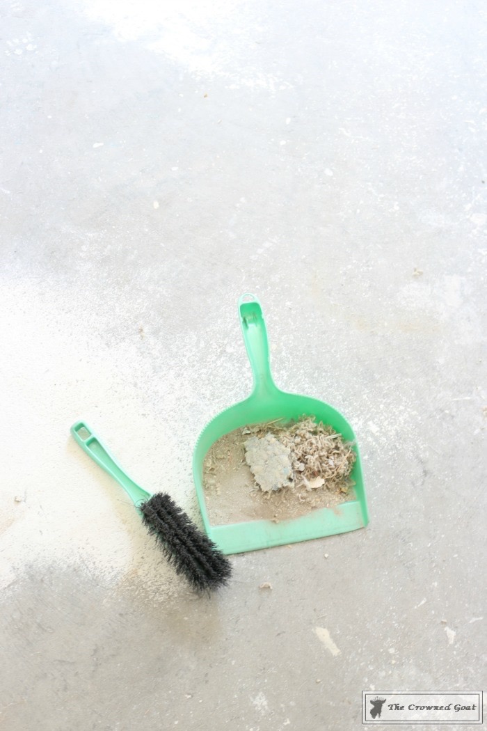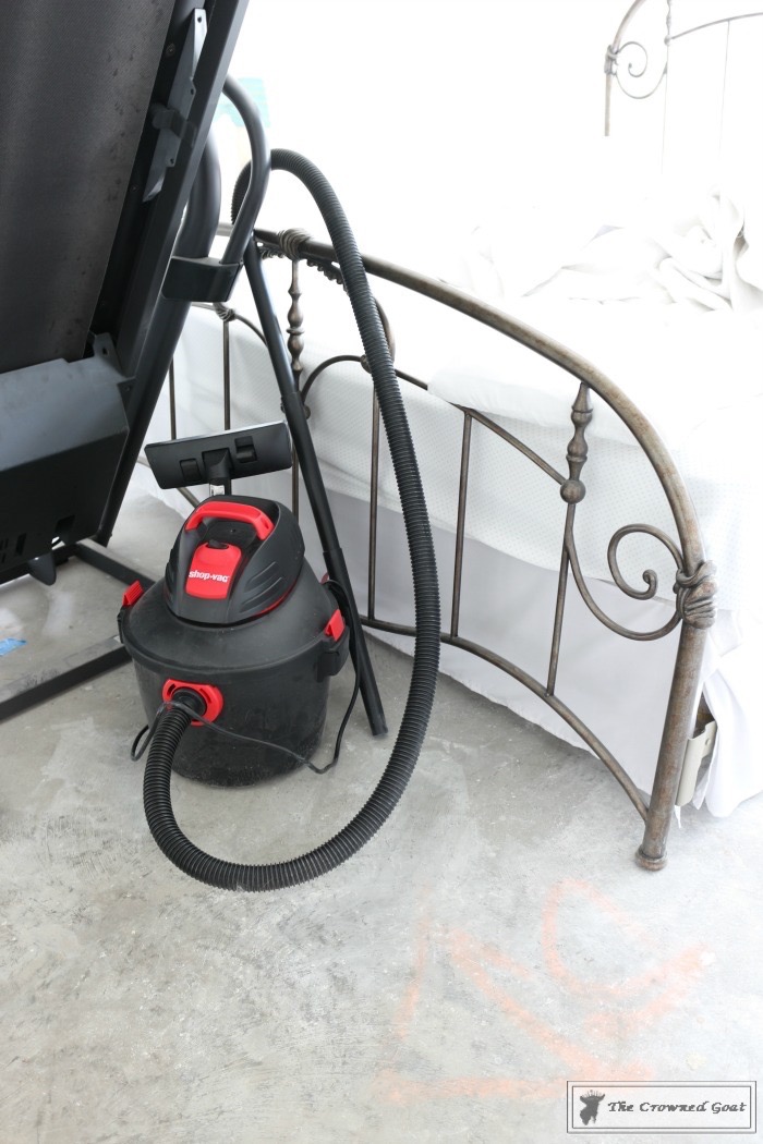 After we finished sanding, scraping and patching the concrete floor, we pulled out the shop vac and vacuumed any remaining dust or concrete particles off the floor.