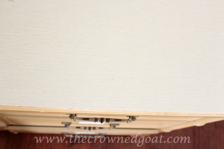 If you ever come across a finish like the top of this dresser that looks and feels slick, you need to take the extra time to sand it a bit. This helps give the piece some tooth and allows the paint to adhere better. I used 120-grit sandpaper on the entire piece.