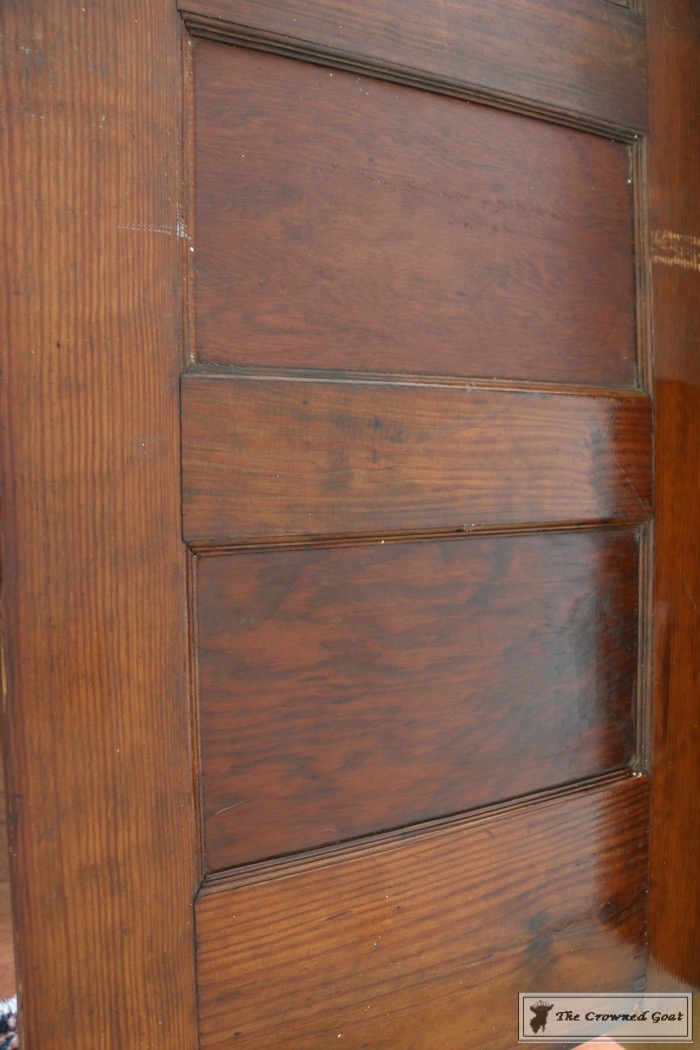 Here’s a look at our console table made from an old door using the polish. The portion on the top has not been treated and the portion on the bottom is using the polish.