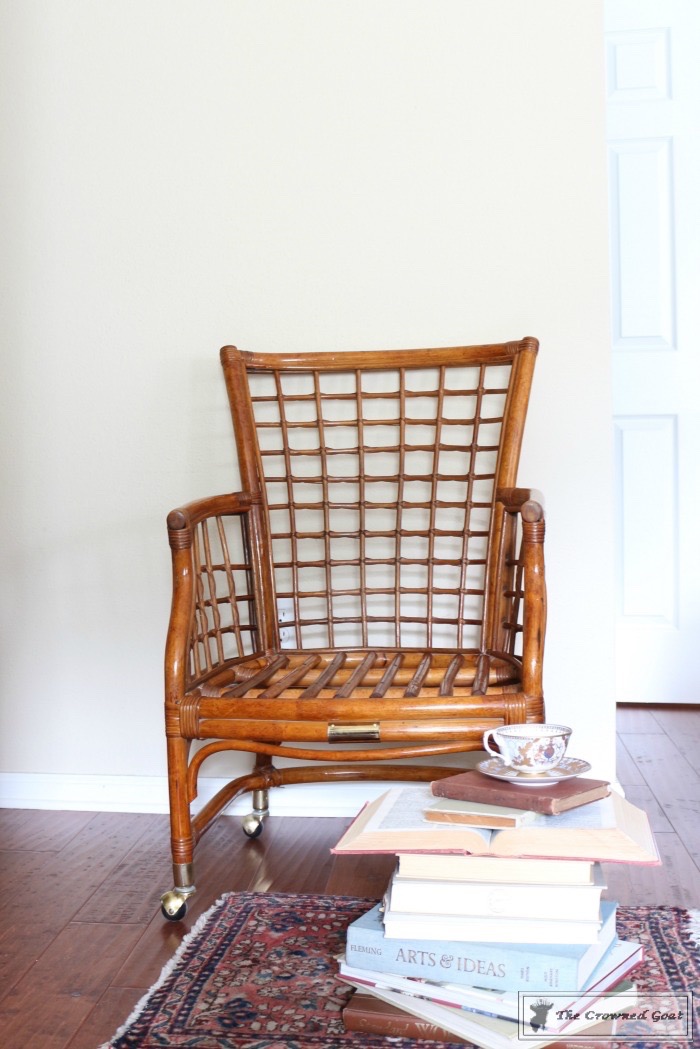 As I mentioned yesterday, this entire weekend was filled with lots of running around for my other job as a vendor at The Pickers Market. I was so excited to find a few pieces of furniture at the estate sale on Saturday. One of the pieces was the media cabinet I shared yesterday and the other was this vintage rattan chair. I know!