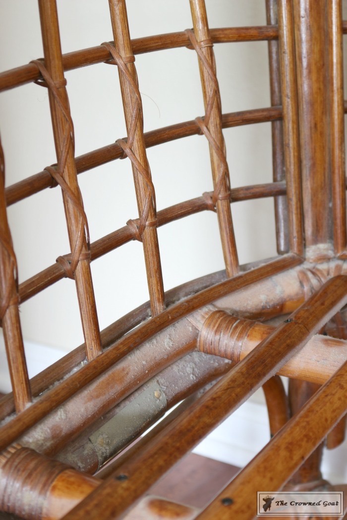 And here’s a closer look at the rattan chair. The portion on the top has not been treated and the portion on the bottom has the DIY furniture polish on it…