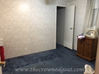 Giving the bedrooms a makeover was a top priority. In order to keep things budget friendly, we kept all of the wallpaper in tact and brought in new flooring for the entire house. The previous homeowners had not made any major changes to the home since the 1960s and there was blue carpet throughout. As you guys know, getting new floors is quite an undertaking but it made a huge difference. Here’s a look at the bedroom before…