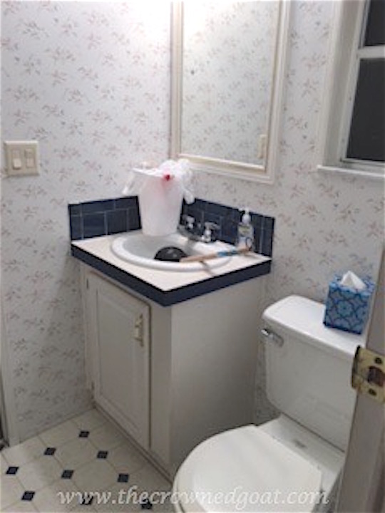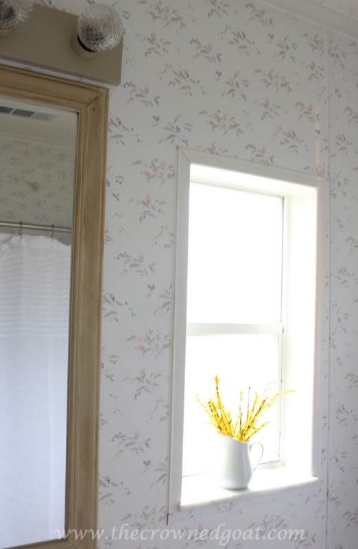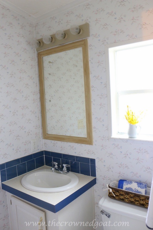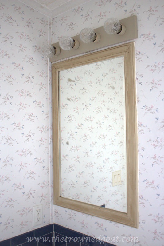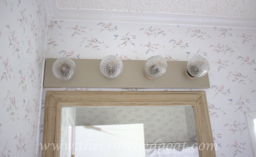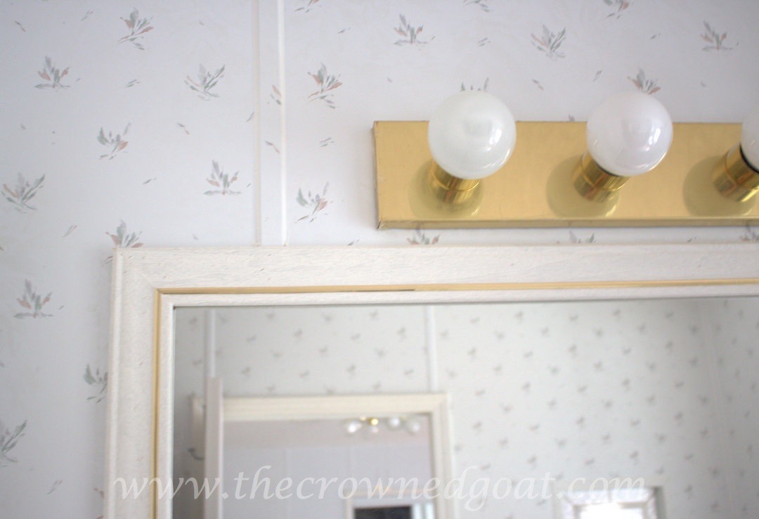 As with the bedroom and the rest of the house, we changed out the floors and left the wallpaper. The vanity and sink were in good shape so we left those in tact too. But the homeowners wanted to give a fresh look to the bathroom mirror and light fixture.